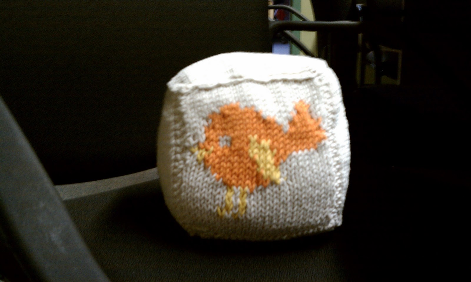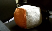 Here are a few of the left over squares from the blanket we made for Meg. The chick is done in Intarsia so the floaters made it unsuitable for baby toes. The remaining squares are just a simple 6×6 in stockinette stitch with a garter stitch selvedge for easy seaming. The final touch was the addition of a few jingle bells tucked inside for a maximum giggle factor. Too cute!