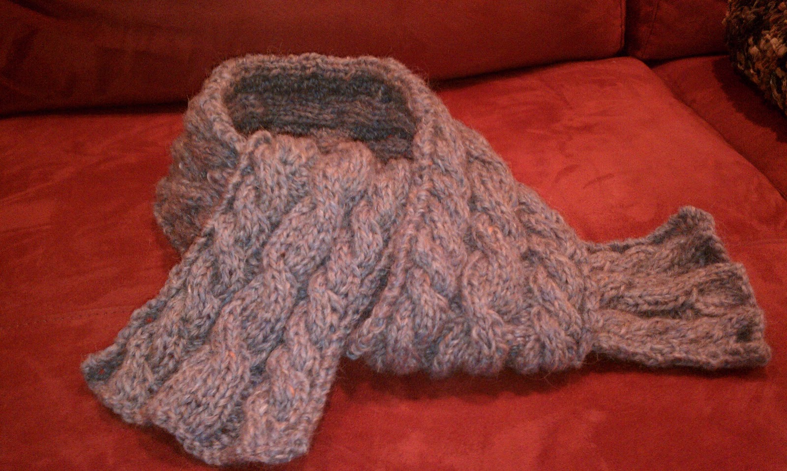 I completed the scarf and I could not be happier. This was a pleasure to knit, and thanks to the generosity of the designer who offered his pattern at no cost, I am able to use this for teaching new knitters the basic cable.