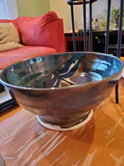 This is a pottery bowl made for me by a wonderful young lady named Margaret. She knows how much I love dragonflies. I wish the photo were better; the colors are so beautiful and the glaze gives it such a striking finish. Margaret, her work (and cute puppy) can be found on Instagram: @wild_designand Etsy: WildDesignNY