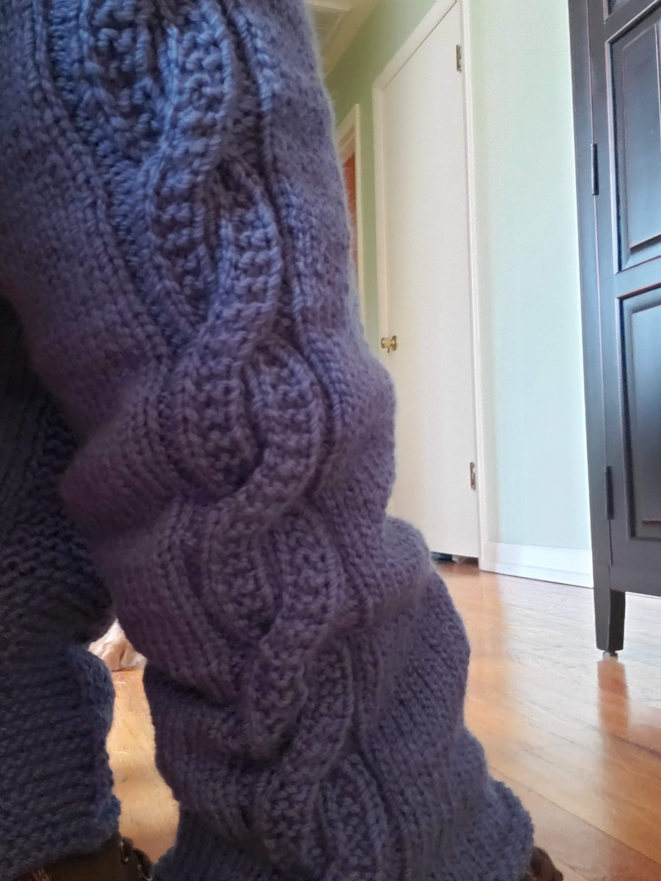 It was a close call. I was happily knitting along on my Soup Snakes – woolly leg warmers by Laura Aylor-aka Fogknits. I thought I planned this project out perfectly. I swatched, people, I swatched! Everything was going according to plans until it didn’t. It appeared I miscalculated the yarn, or so it seemed. I placed the project on waste yarn while I figured out my options. I thought about begging for a ball or two from folks on Ravelry, but people only had the superwash variety in their stash. I thought about working the last section in a contrasting color. Then I thought ripping both out, casting on with smaller needles, and tweaking the stitch count was the way to go. My final decision was to cast on for socks. Logical, right? As I poked around in the bin of yarn, what do you think I saw? Only 5 balls of the desired yarn needed for the leg wramers. When I say I was happy, I mean I was overjoyed! I was *this* close to frogging. You may be wondering how I missed seeing the yarn the first time I looked. Let’s just say my mind has been a bit preoccupied and leave it at that. This is a great pattern; very well written and tons of fun to knit. Two thumbs up! Here is the finished product and I am very pleased.