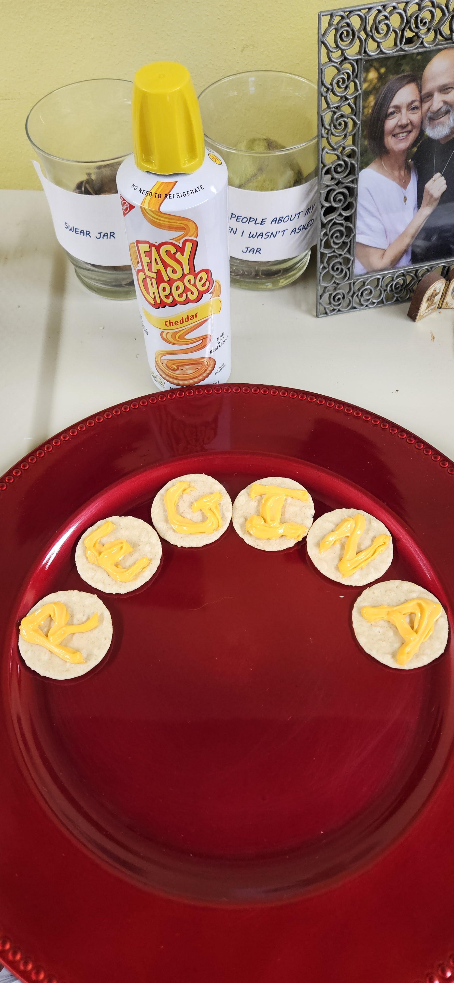 I am in pretty good company here at the middle school. Seems I’m not the only one who enjoys a little cheese. Stepped away from my desk and returned to find my name literally written in cheese!