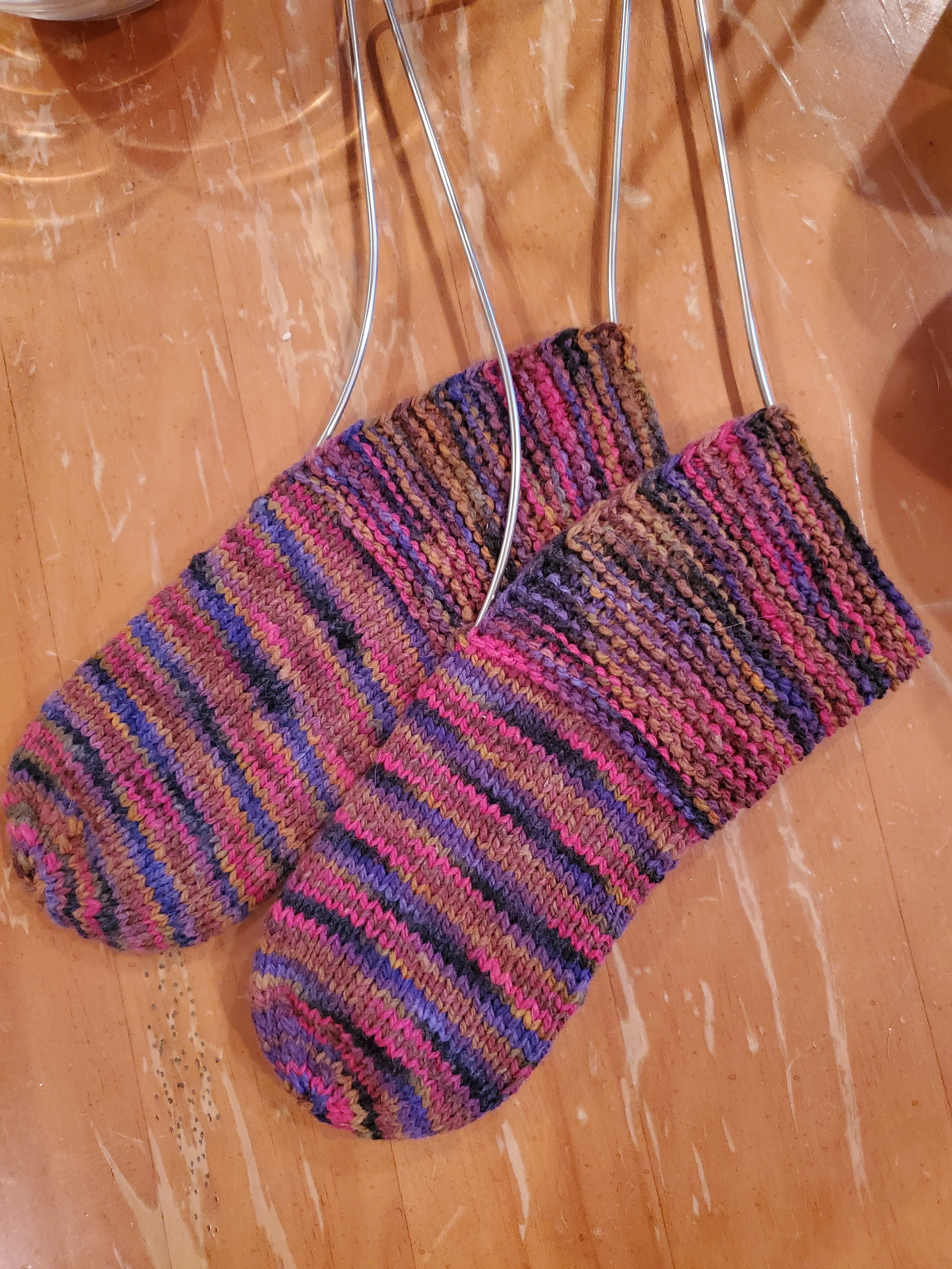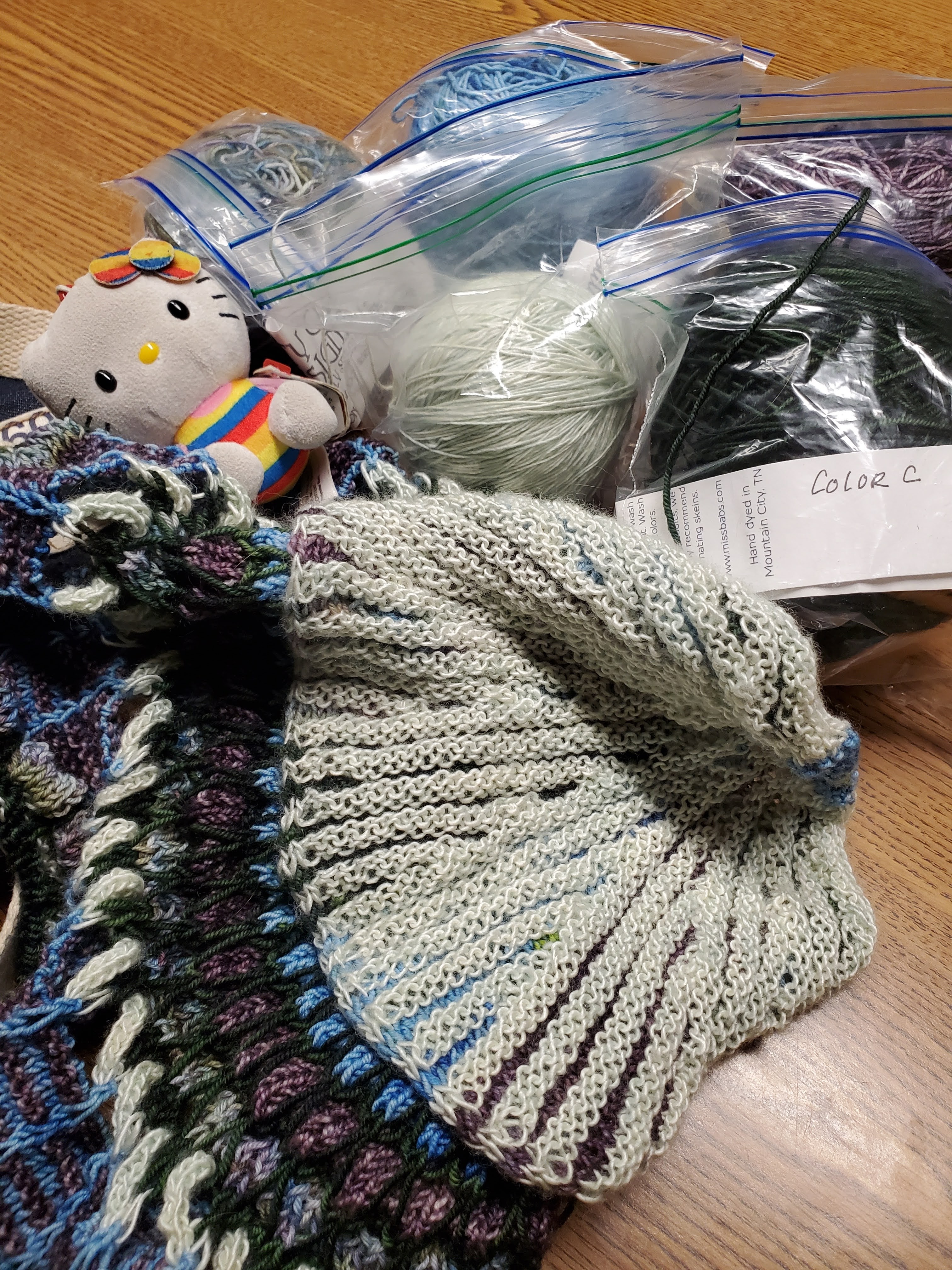 In my earballs: Pardon my Stash, knitting podcast. This bunch hail from Connecticut and spend a little time talking about knitting and a lot of time laughing. They are geeks so I love them!